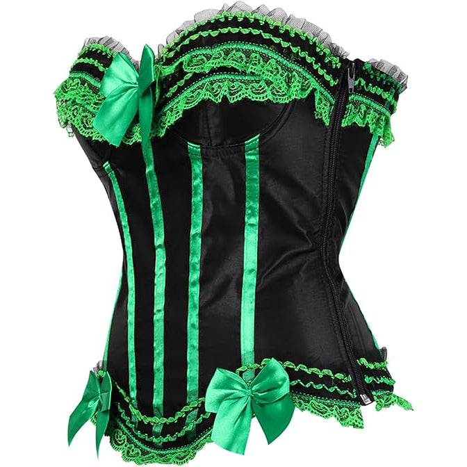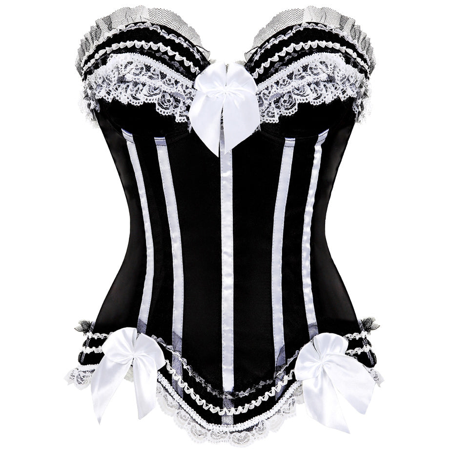 Stripe Bowknot Satin Lace Trim Bodice Overbust Corset