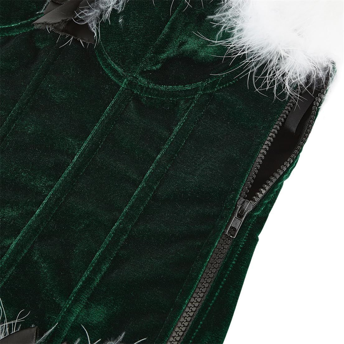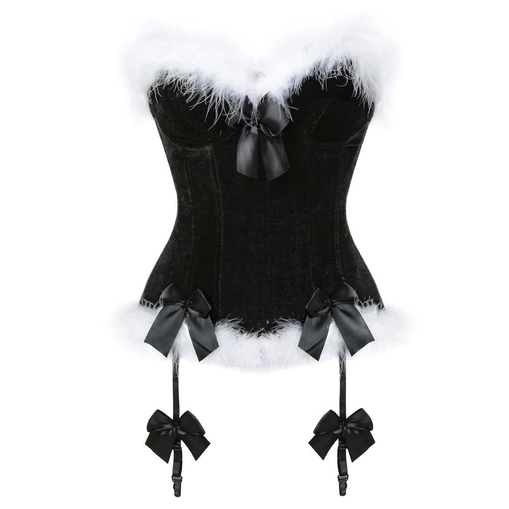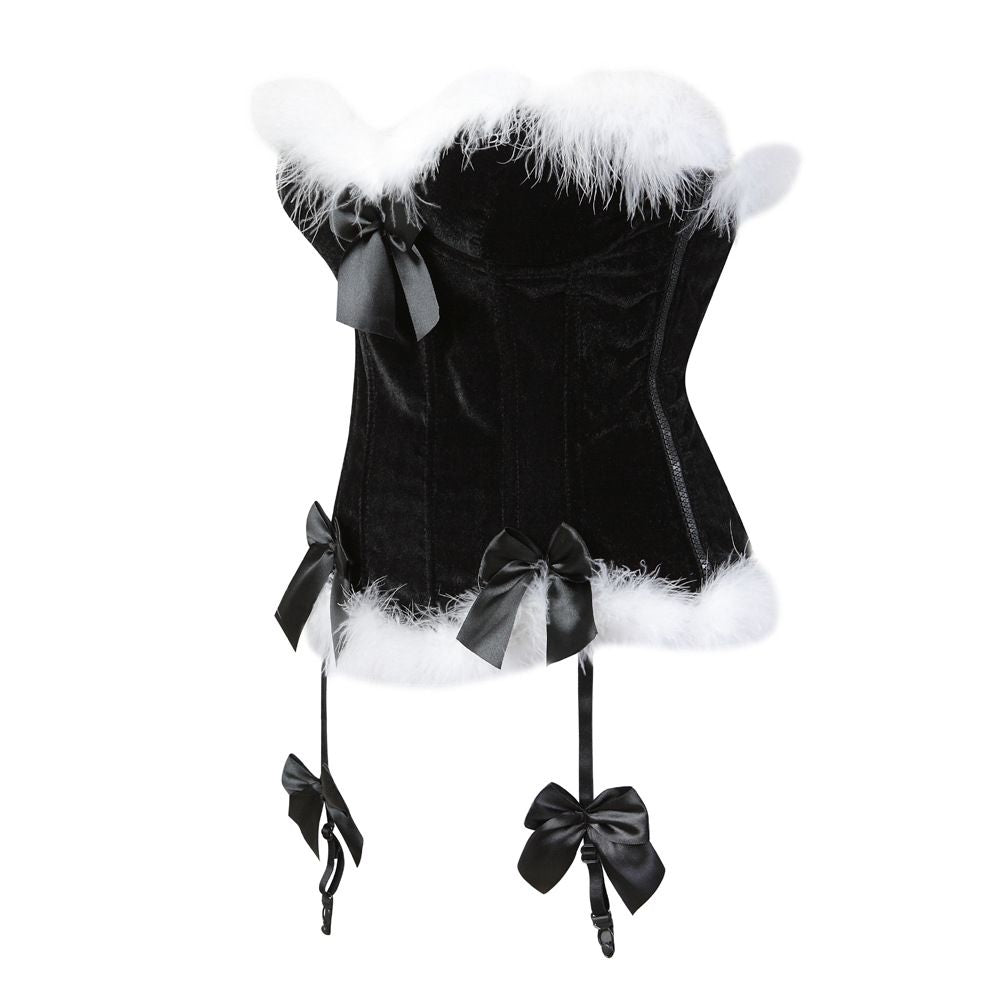 Women's Christmas Feather Velvet Santa Costume Bustier Corset Top Garter
