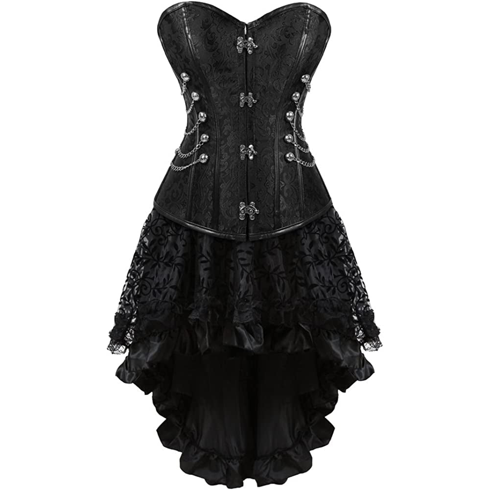 • Women's Steampunk Victorian Clothing Vintage Corset Dress Halloween Costume Gothic Corset Skirt Set