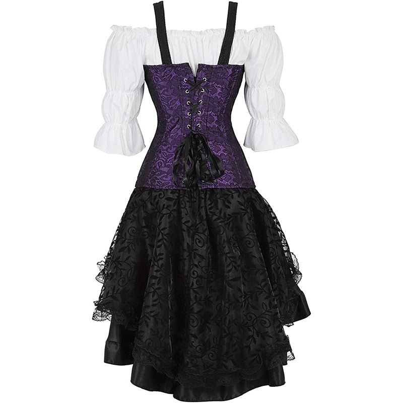 • Women's Steampunk Victorian Clothing Vintage Corset Dress Halloween Costume Gothic Corset Skirt Set