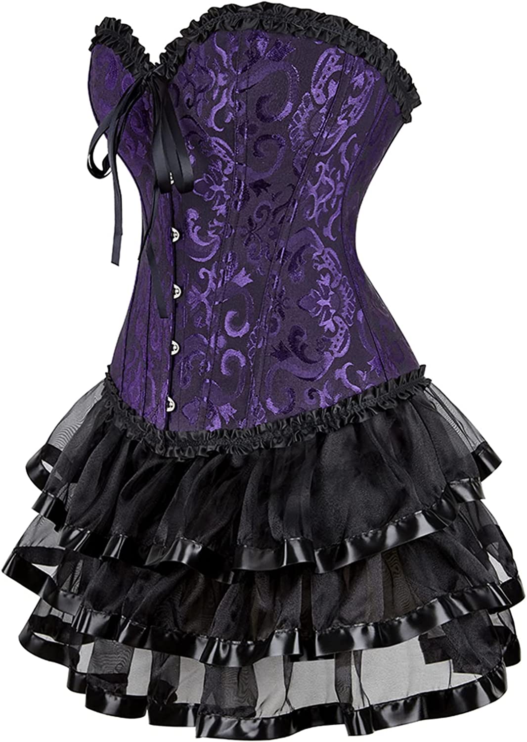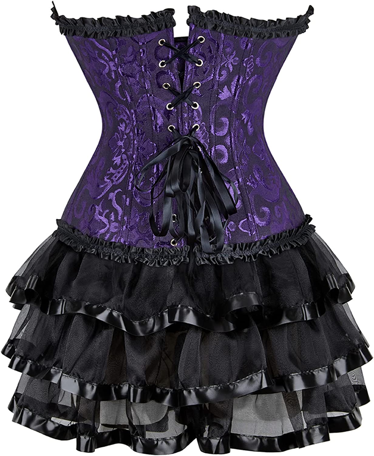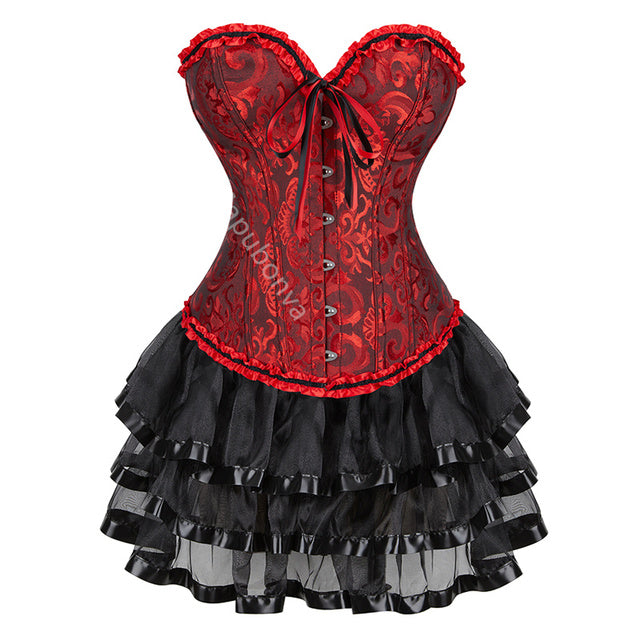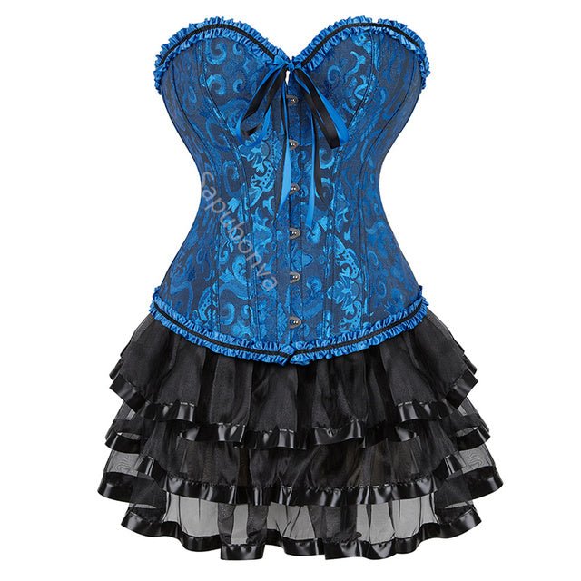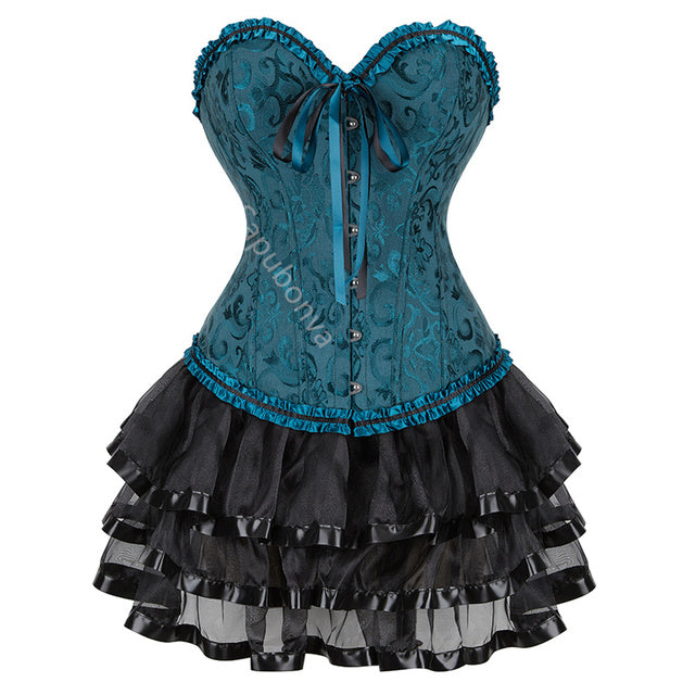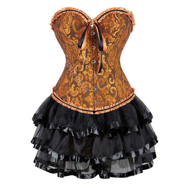 • Women's Steampunk Clothing Vintage Corset Dress Halloween Costume Gothic Corset Skirt Set