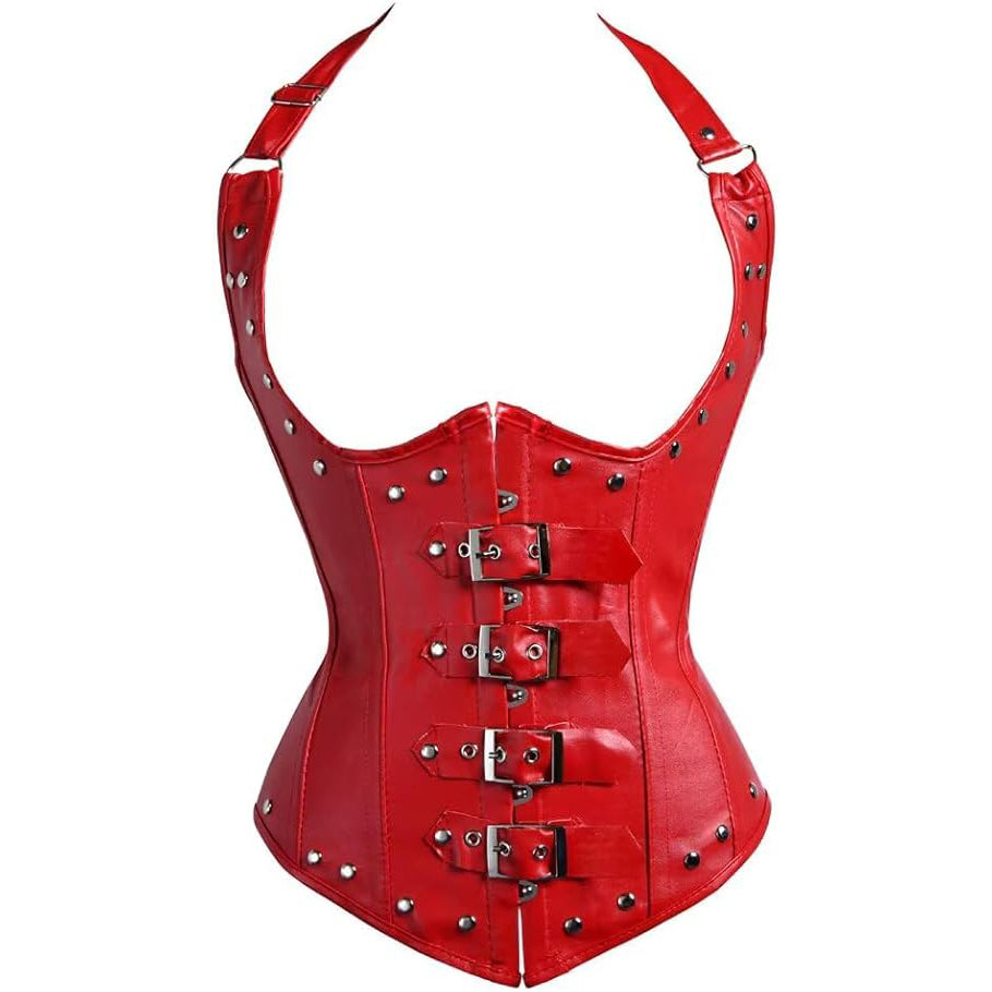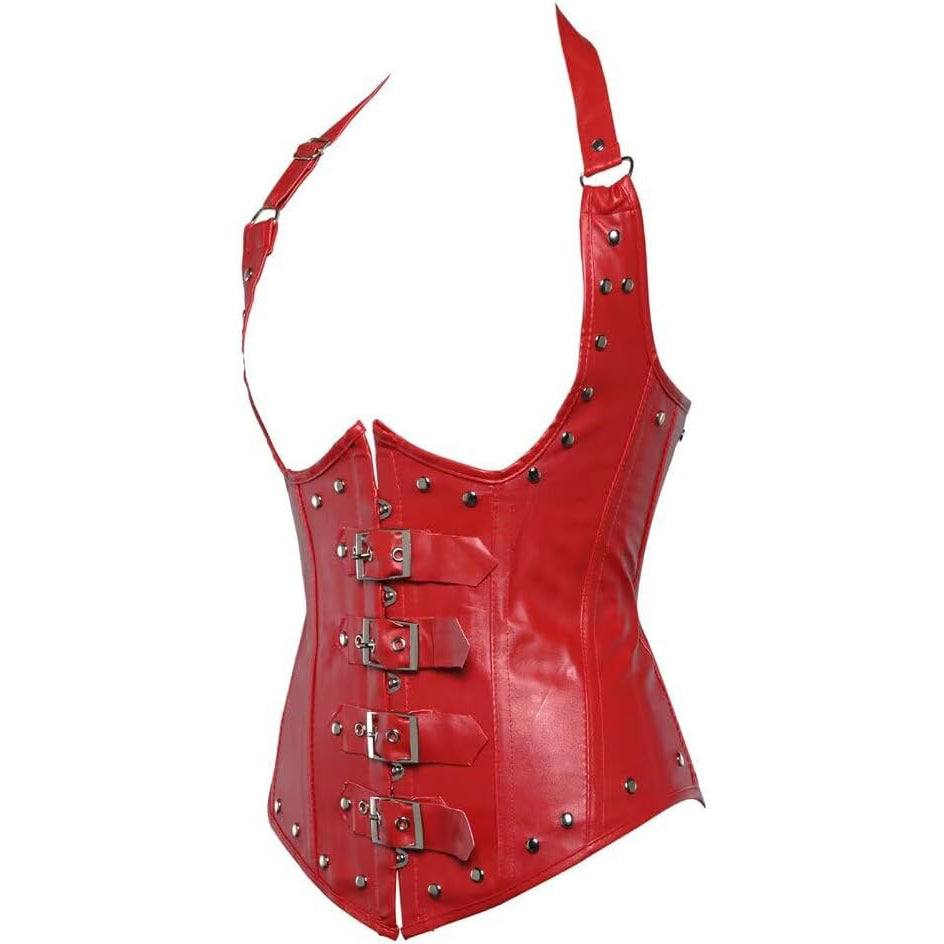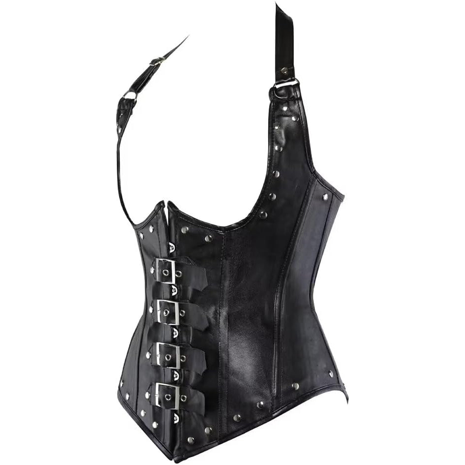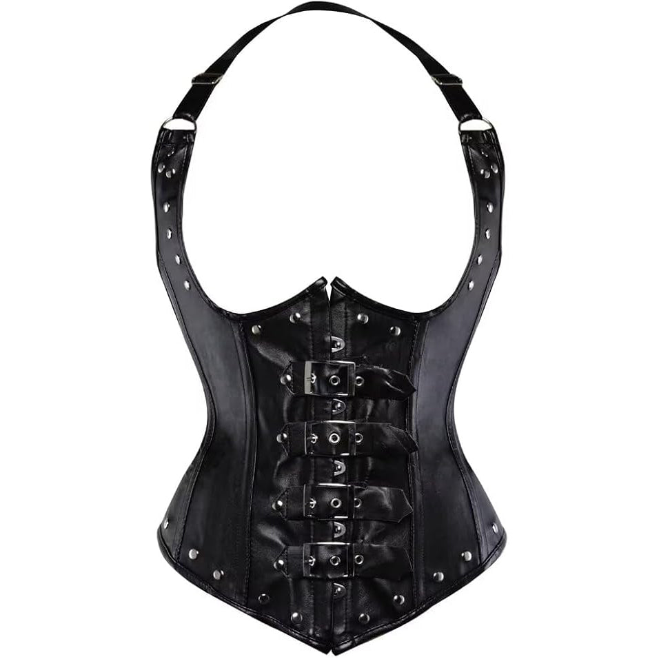 Leather Halter Cupless Rivet Steampunk Underbust Corset with Buckles