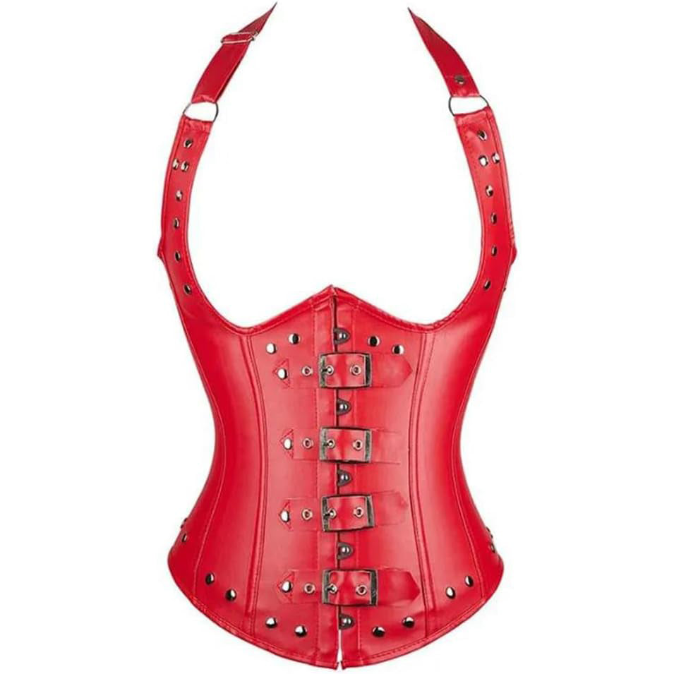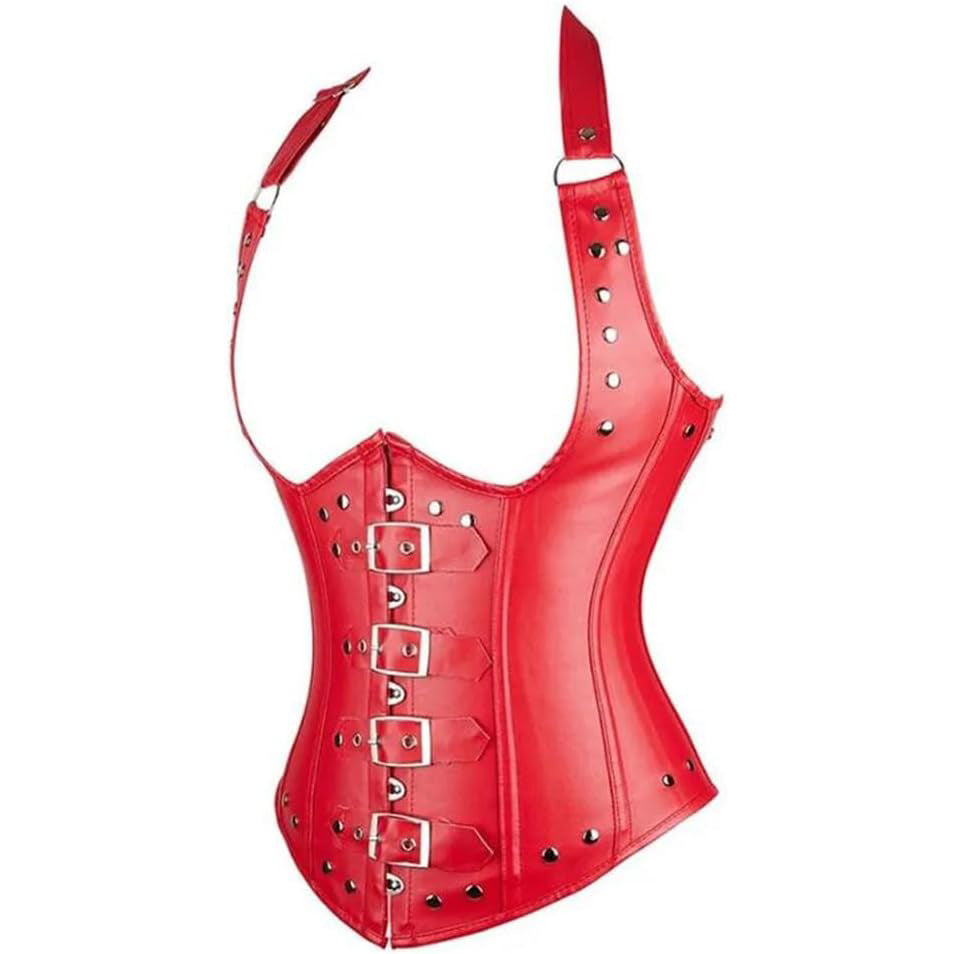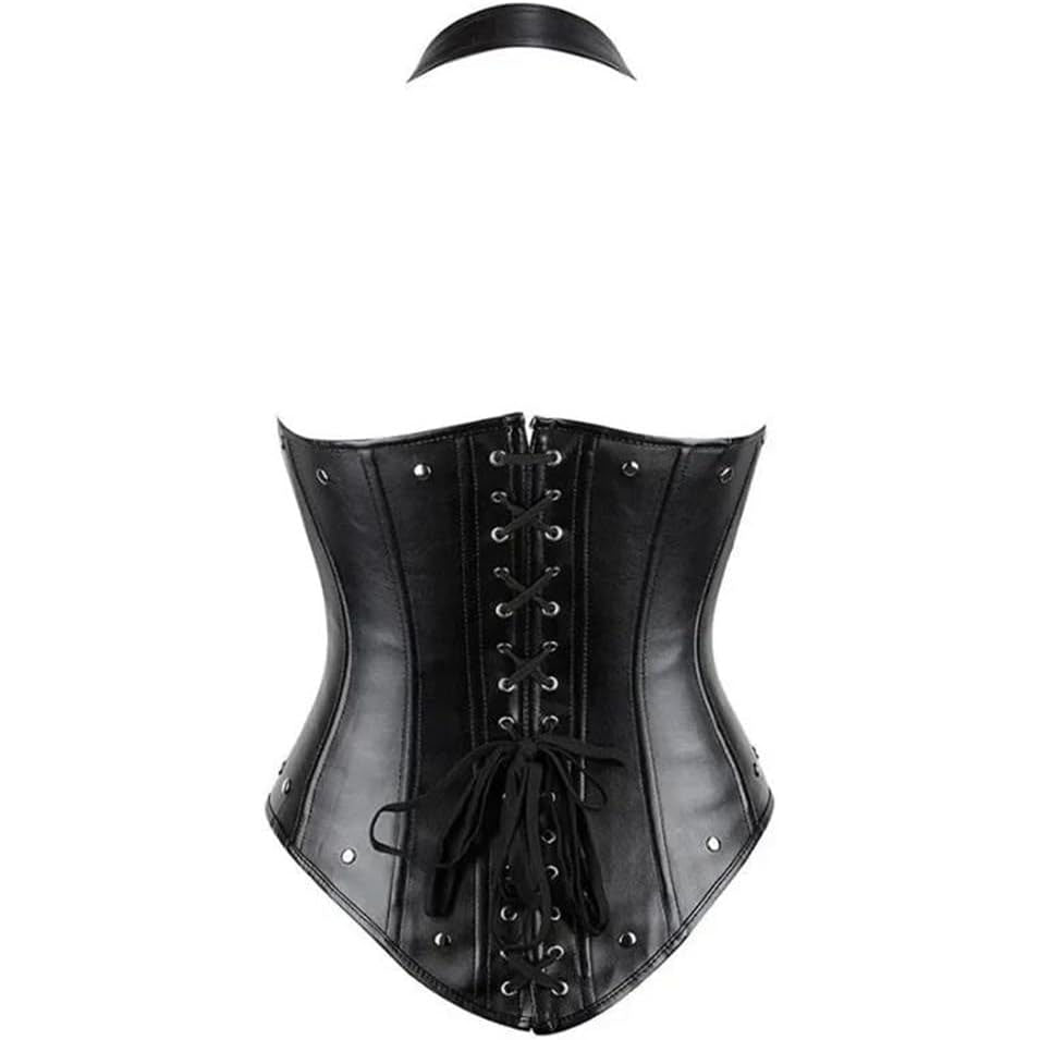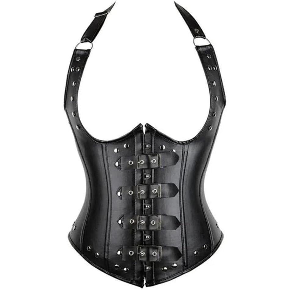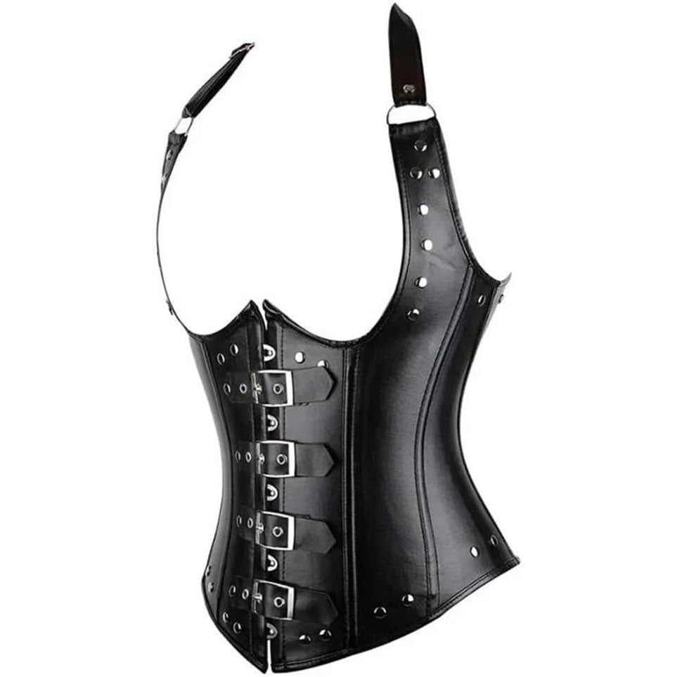 Leather Halter Cupless Rivet Steampunk Underbust Corset with Buckles