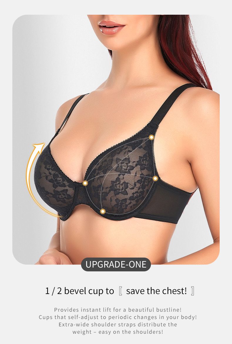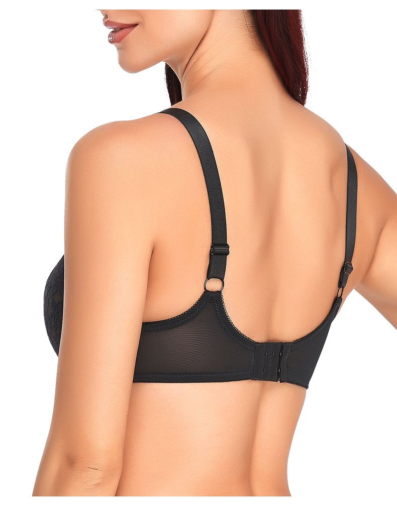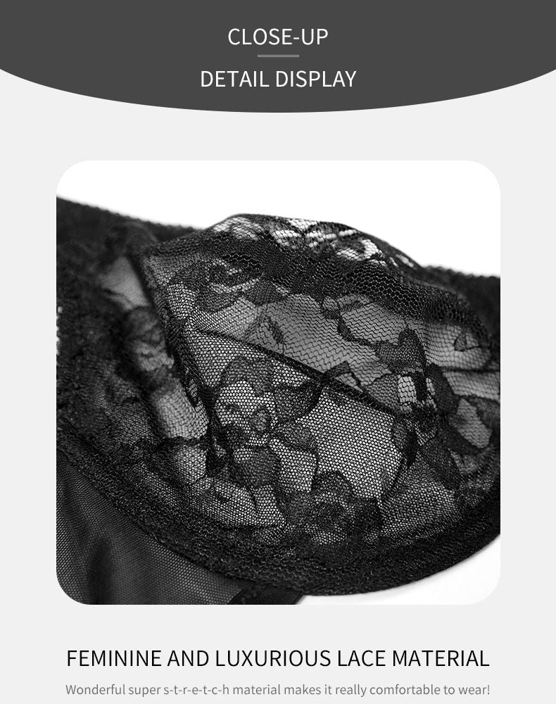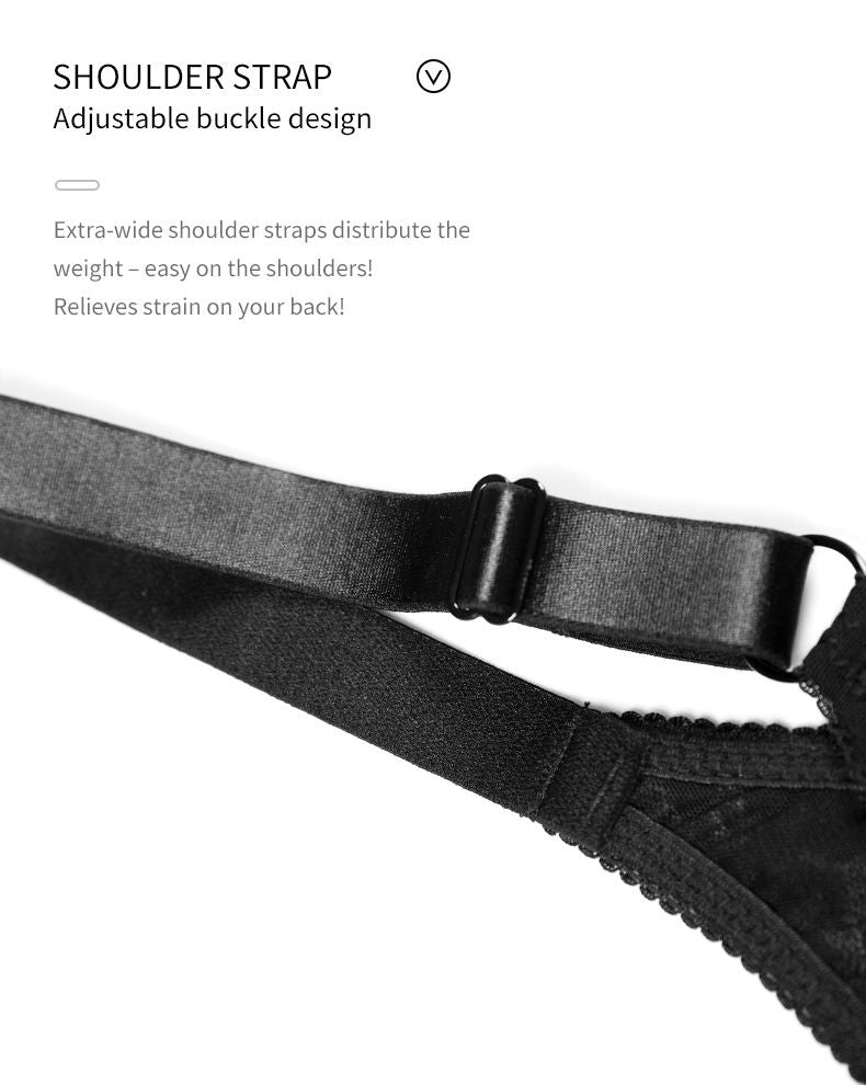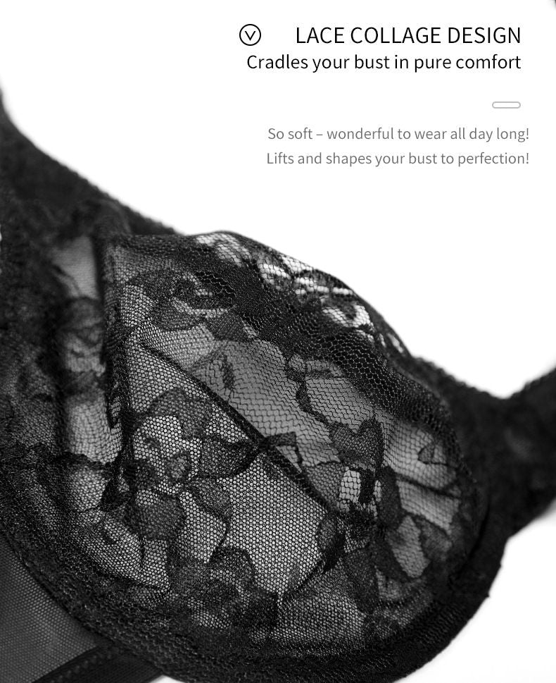Comfort Breathable Anti-Sagging Push Up Ultra Thin Underwired Black Plus Size Lace Bra